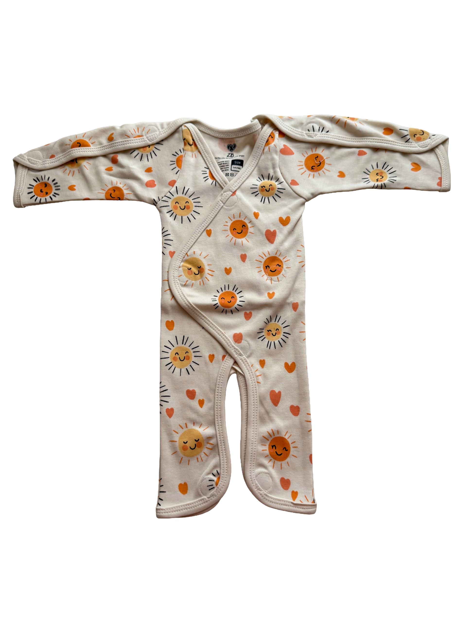 Wrap your baby in full-body comfort with our Pure Cotton Preemie Full Bodysuit. The breathable cotton keeps baby cozy, while Velcro fastenings make changing simple and gentle. It's Happy Sun pattern spreads warmth and happiness through every snuggle.